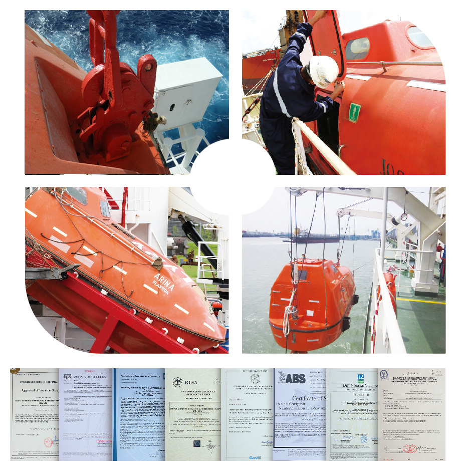 救生艇服務(wù)部成立于2006年,已取得CCS、LR、DNV-GL、ABS、BV、RINA、NK、KR等船舶檢驗(yàn)機(jī)構(gòu)核準(zhǔn)的救生艇及艇架檢驗(yàn)與維修資質(zhì)。目前擁有經(jīng)過專業(yè)培訓(xùn)的持證服務(wù)工程師26人,年平均服務(wù)船舶數(shù)量達(dá)1000多艘。