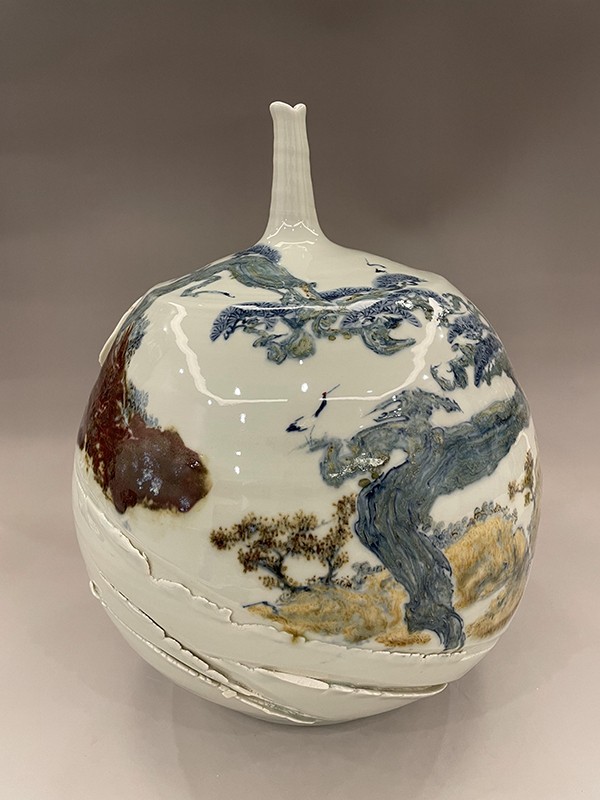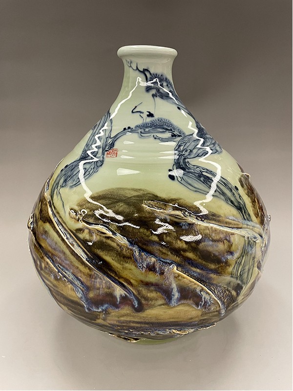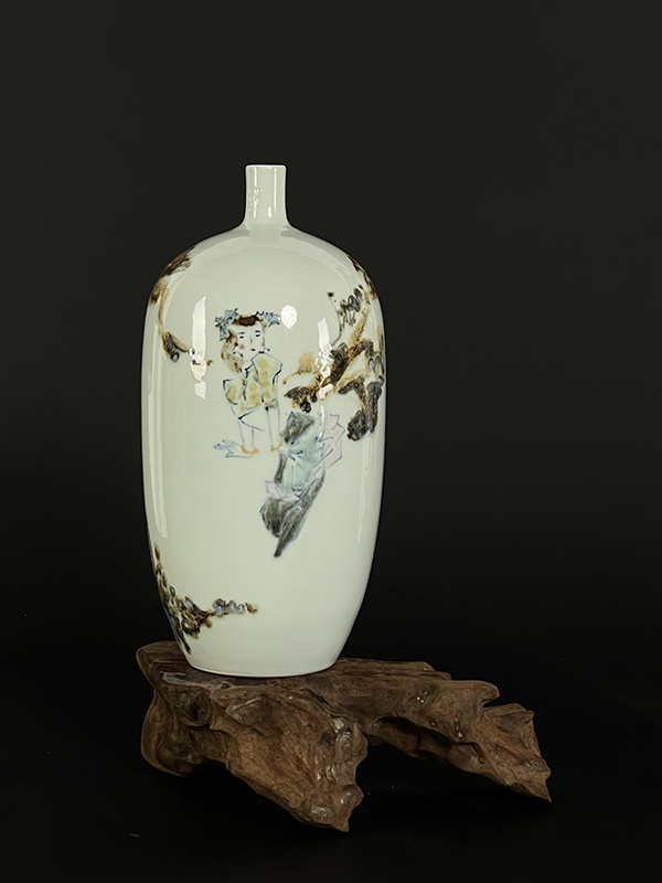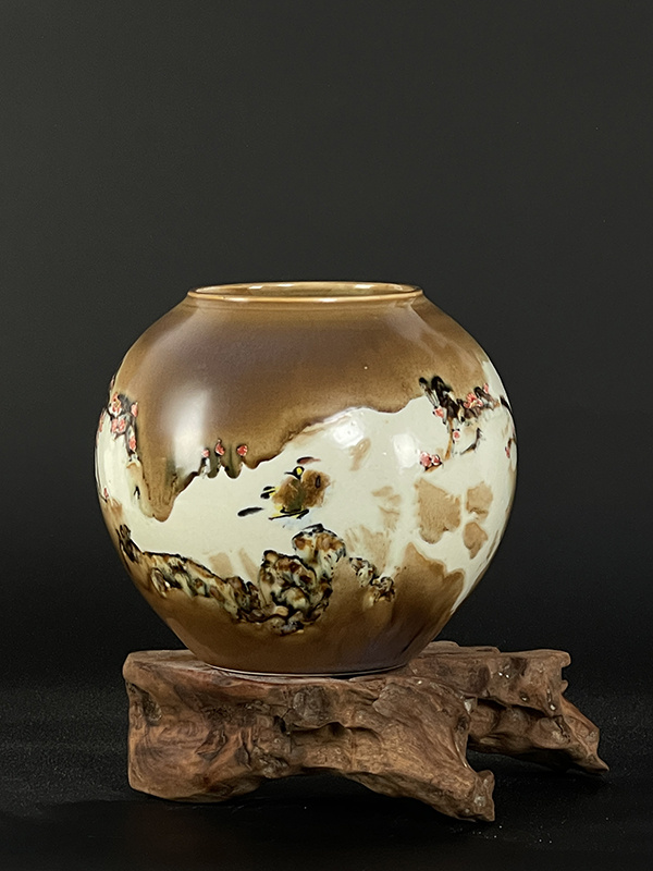 周志兵,江西省陶瓷藝術(shù)大師,景德鎮(zhèn)非遺傳承人。2007年畢業(yè)于景德鎮(zhèn)學(xué)院。畢業(yè)之后一直從事陶瓷繪畫工作,擅長高溫顏色釉,綜合裝飾,雕刻。在陶瓷多個方面都有探索和研究,但對高溫顏色釉一直是喜歡, 隨著學(xué)習(xí)和對顏主要有色釉的深入研究,本人逐漸涉及的題材也更加多樣,主要有花鳥與山水?;B主要怡情,具有宋人閑人雅趣的文人情懷,多為小品,相對于花鳥,我更喜歡山水的大氣之美,而顏色釉的流動性和不可控性也剛好可以詮釋山水的格局,因此一直以來我都致力于山水創(chuàng)作。在創(chuàng)作同時,本人也一直積極參加很多有關(guān)陶瓷方面的展覽,經(jīng)常會和一些老師一起到外地舉辦陶瓷展覽,也算是為弘揚陶瓷文化盡一點綿薄之力。參加展覽之余,同時也會參加各種陶瓷評比活動,也是為了讓陶瓷專業(yè)人士對自己的認(rèn)同。